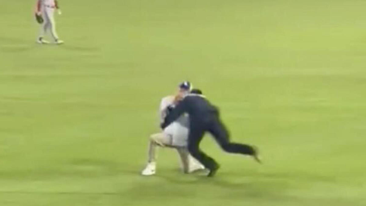 A Dodgers fan's surprise proposal goes viral after he was tackled in the outfield
