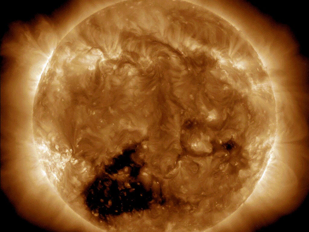 The sun is sporting a giant coronal hole that could fit 20-30 Earths across, back-to-back.