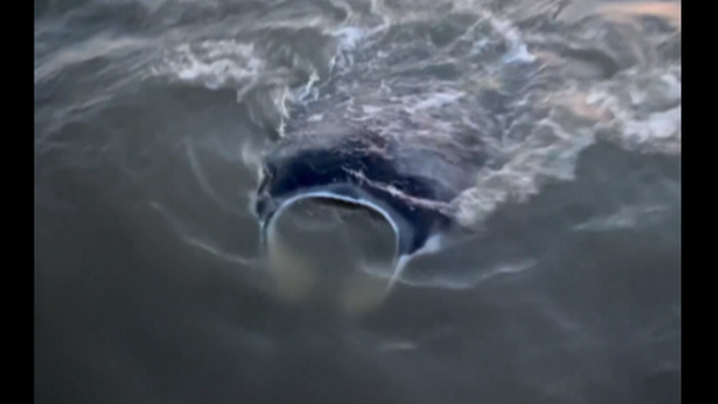 A U.S. Coast Guard crew encountered a strange creature off Louisiana that resembled a giant mouth with fins — and it was headed straight for their boat.