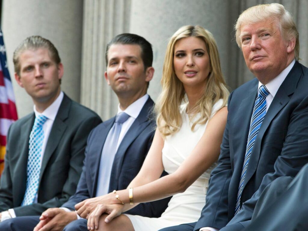 Donald Trump, right, sits with his children, from left, Eric Trump, Donald Trump Jr., and Ivanka Trump.AP Photo/Evan Vucci, File