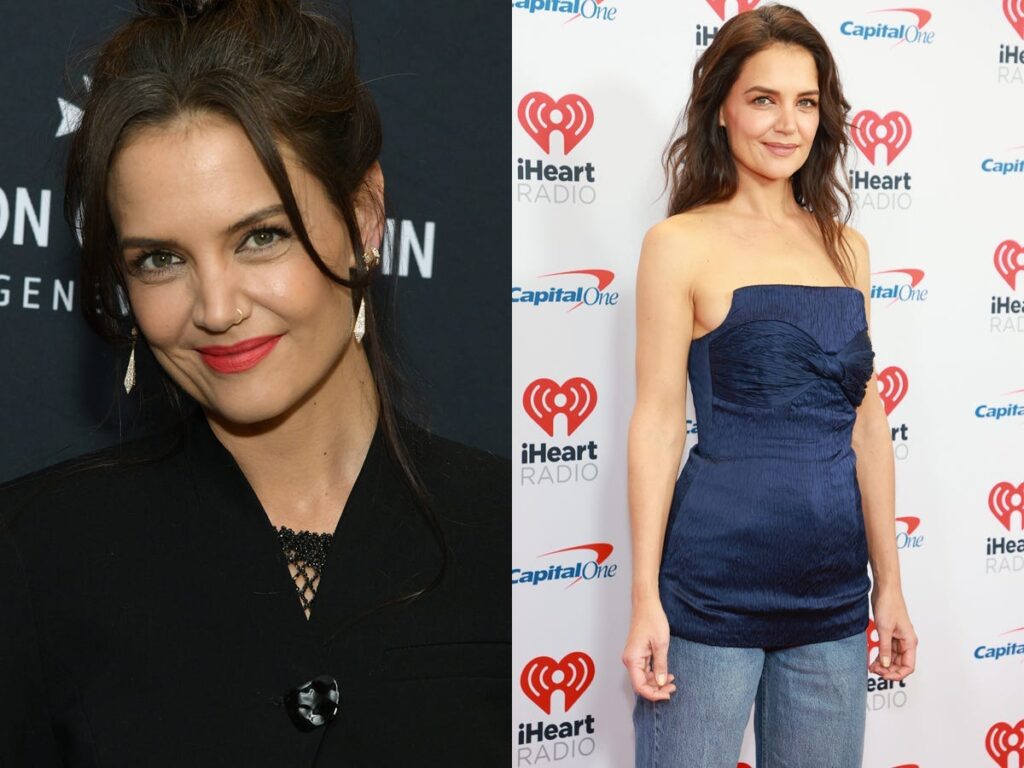 Katie Holmes in 2023, left; right, ahead of the Jingle Ball in 2022.Kristina Bumphrey/Variety via Getty Images; Arturo Holmes/WireImage