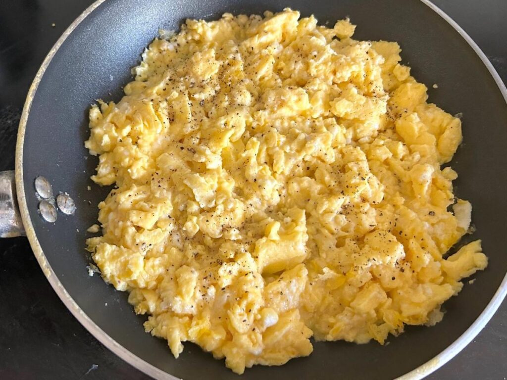 The delicious scrambled eggs were creamy, fluffy, and rich — and looked beautifully golden.