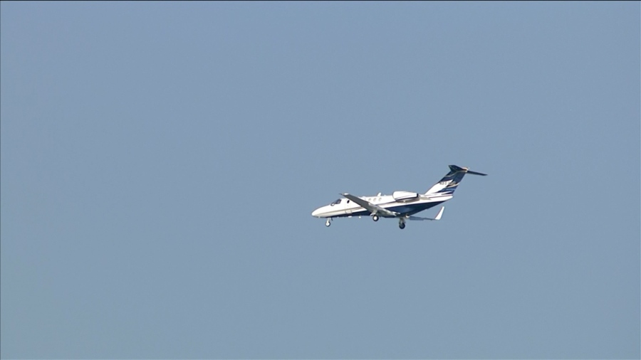 The pilot was the only one on board, and landed the aircraft safely. When the jet stopped, emergency services responded to the plane.