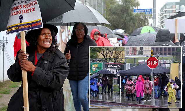Los Angeles public school district employees faced the rain and followed through with their threat of a three-day strike on Tuesday, aiming to secure higher wages.