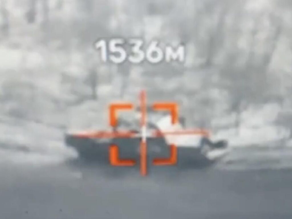 The video, shared by Ukraine’s military on Facebook on Tuesday, shows the drone zeroing in on the target before striking and causing it to explode.